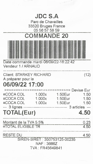 Ticket de Caisse :