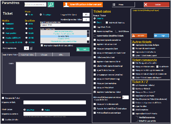 - Paramètres de votre imprimante ticket :