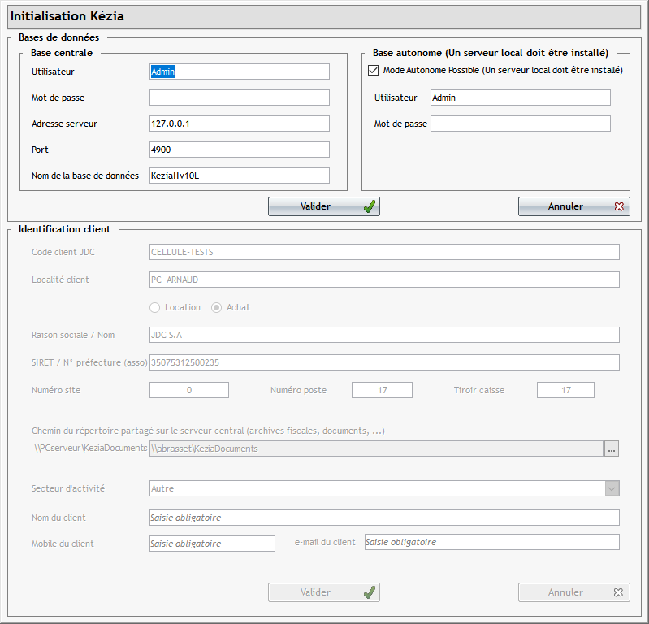 L'identifiant de caisse : grisé car déjà renseigné lors de l'identification identifiant.