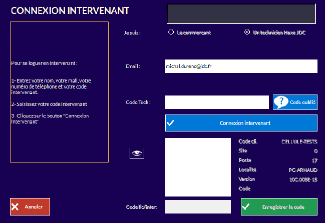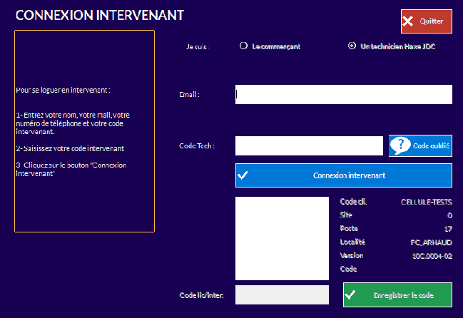Permet à un technicien de se connecter en tant qu'intervenant dans le logiciel.