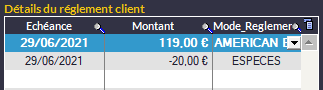 Dans Fichier -> Paramètres -> Modes Règlement Paiement, la colonne Cashback Autorisé permet d’autoriser un mode de paiement autre que CARTE "classique" (American Express par exemple) pour faire du CashBack. En revanche, il est impossible de le lier à un mode de paiement chèque/carte restaurant.