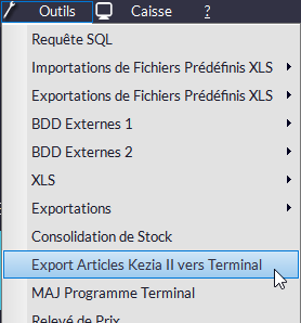 Cette fonction vous permet d'exporter votre base article dans un terminal inventaire :