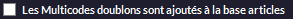 Permet la création de multicodes en doublon (deux fiches article avec le même code-barres). -