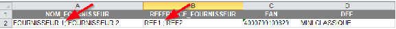 Sont concernées, les colonnes Fournisseur, Référence Fournisseur, Prix Achat et Remise Achat.