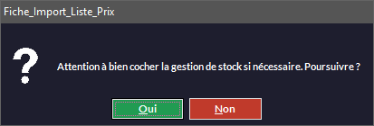 Si vous n'avez pas coché la gestion de stock (colonne GesStock - à la fin du tableau) le logiciel vous le rappellera :