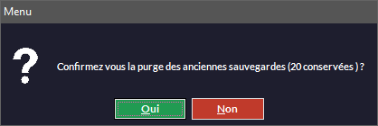 Permet de purger les anciennes sauvegardes et de conserver les vingt dernières (20 étant le nombre par défaut, on peut en paramétrer moins dans le menu Fichier -> Paramètres -> Configuration -> Serveur).