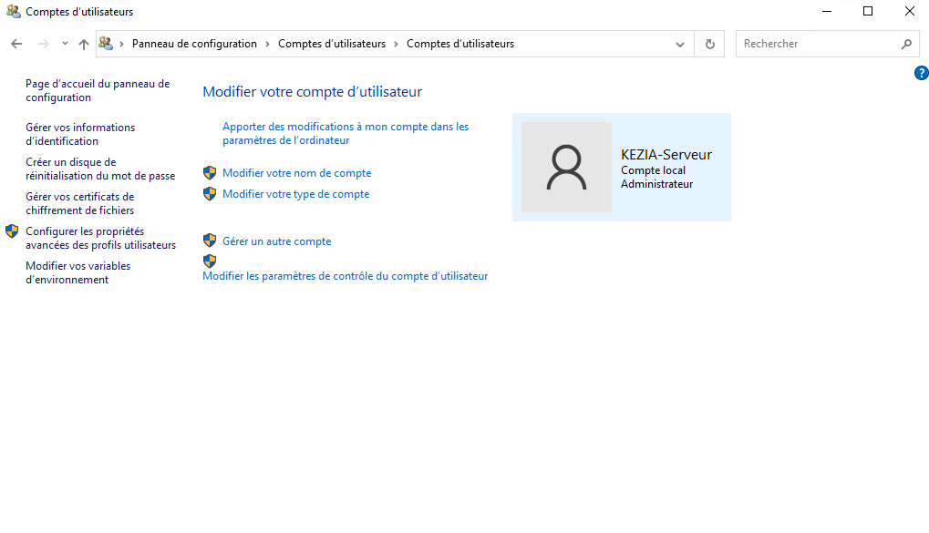 Ce paramètre est également accessible dans Panneau de configuration/Comptes d'utilisateurs/Comptes d'utilisateurs/Modifier les paramètres de contrôle du compte d'utilisateur.