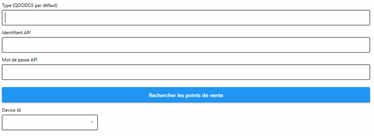 Onglet par défaut) : QOODOS Identifiant API : Fournit par le service digital (mail client) Mot de passe API : Fournit par le client Identifiant du poste : Affichage lors du clic sur « Rechercher les points de vente »Fidélité.
