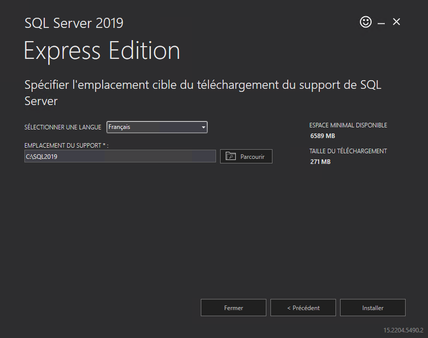 Le serveur de base de données utilisé “SQL Server 2019 Express Edition” doit être installé sur le poste (“Serveur”) hébergeant la base de données KeziaII.