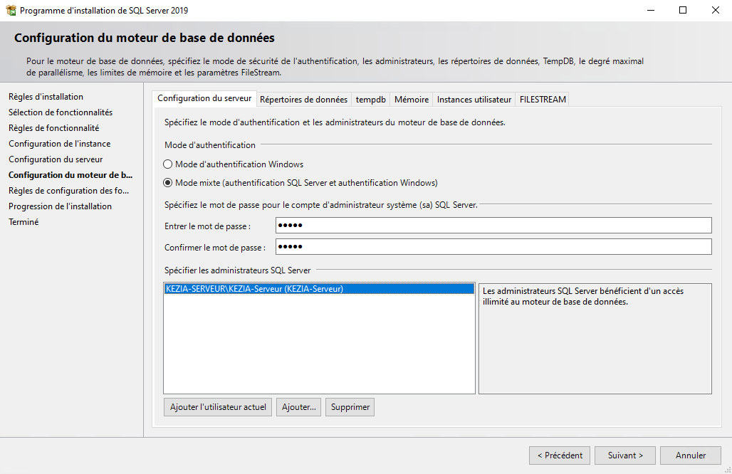 Le serveur de base de données utilisé “SQL Server 2019 Express Edition” doit être installé sur le poste (“Serveur”) hébergeant la base de données KeziaII.