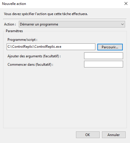 Utilisez Parcourir... pour sélectionner l'exécutable de ControlReplic, puis OK.