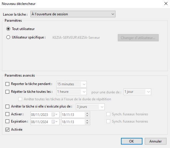 - Créez une tâche planifiée pour lancer automatiquement Control Replic à l’ouverture de session Windows :