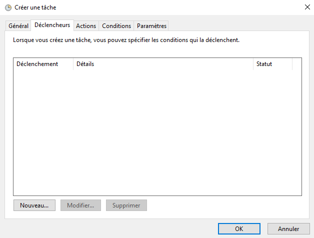 Sélectionnez l'onglet Paramètres, et décochez "Arrêter la tâche si elle s'exécute plus de 3 jours". Enfin cliquez sur OK pour valider la création de la tâche planifiée.