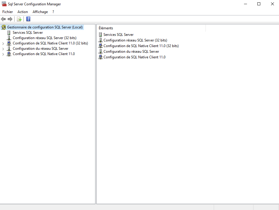 Une fois lancé, cliquer sur « Configuration du réseau SQL Server » et « Protocoles pour SQLEXPRESS ». Sur la droite vous verrez que « Canaux nommés » et « TCP/IP » sont désactivés.