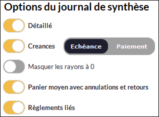☝Les paramètres Sorties Caisse, Retraits, Apports ne tiennent pas compte des paramètres Échéances et Paiement.