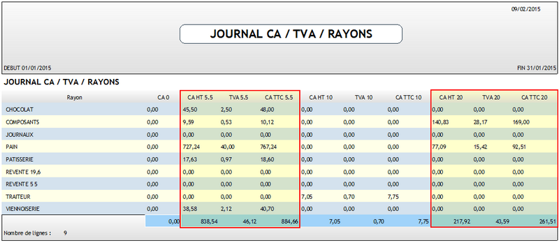 Vous retrouverez sur ce document votre chiffre d'affaires de la période, regroupé par Rayon et TVA.
