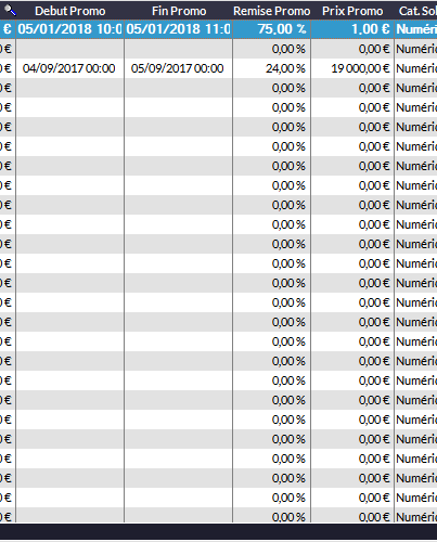 vous n'afficherez dans le tableau que les promos du moment, celles dont la période correspond au jour où vous regardez.
