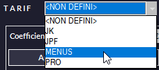 - Sélectionner ce nouveau tarif depuis le menu déroulant T A R I F.