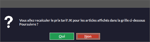 oMÀJ auto des tarifs : permet de "sauvegarder" le mode de calcul ce qui fait que si vous modifiez un prix dans la colonne PV Base TTC, le tarif correspondant va automatiquement se mettre à jour (de nouveau, nous vous conseillons de faire une sauvegarde avant...).