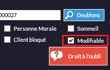 Vous pouvez attacher un de vos tarifs à un client. On pourrait imaginer par exemple un tarif professionnel. Dans la fiche du client, il suffit de cliquer sur Modifiable (coin supérieur droit de la fenêtre) puis sur Multitarif et enfin de choisir le tarif (préalablement créé, voir plus haut...) dans le menu déroulant :