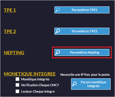 - Si votre TPE est équipé d'un lecteur chèque, vous pouvez l'activer en précisant son port COM.