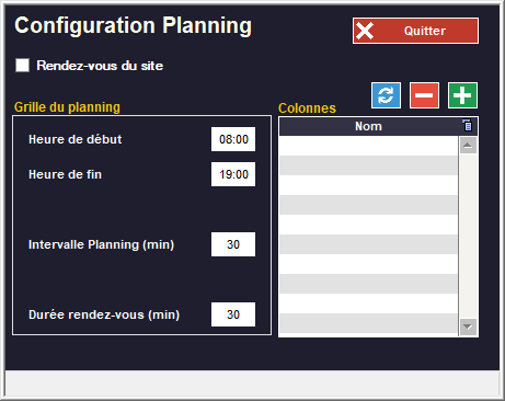 Maintenant que votre planning a une ou plusieurs colonnes, vous pouvez choisir la segmentation des horaires avec le menu déroulant. Par exemple, si vos rendez-vous durent une demi-heure, mettez 30min dans le menu déroulant