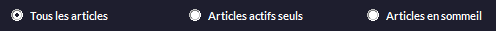 • Vous pouvez trier en n'affichant que les articles actifs, tous les articles, ou seulement ceux en sommeil :