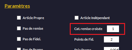 Principe de la remise croisée : vous pouvez avoir un client qui bénéficie en permanence d'une remise. Si vous voulez lui faire bénéficier d'une remise supplémentaire sur certains articles, vous allez utiliser les remises croisées. En fait, la conjonction d'un client et d'un article en particulier enclenchera la remise supplémentaire.
