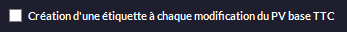 • Vous pouvez demander la création automatique d'une étiquette pour tout prix de vente TTC modifié en cochant