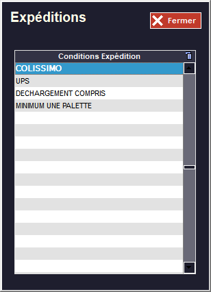 - Cliquez sur le menu Fichier -> Paramètres -> Conditions d'Expédition