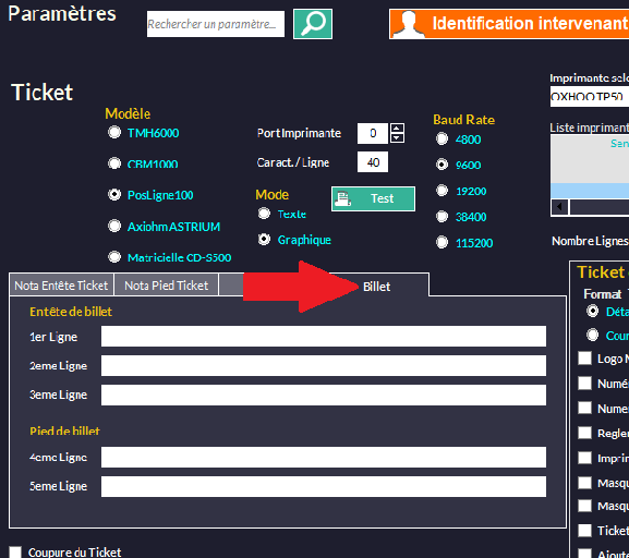 • Remplissez l'en-tête et le pied du billet et validez en quittant.