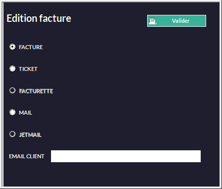 E-MAIL (pour MailJet voir plus bas) permet d'envoyer par e-mail au client désigné, sa facture lors de l'encaissement :