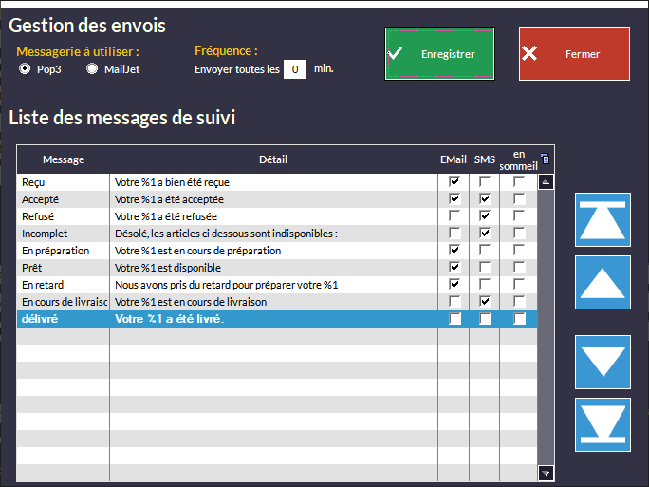 Vous permet d'envoyer des messages de suivi à vos clients.